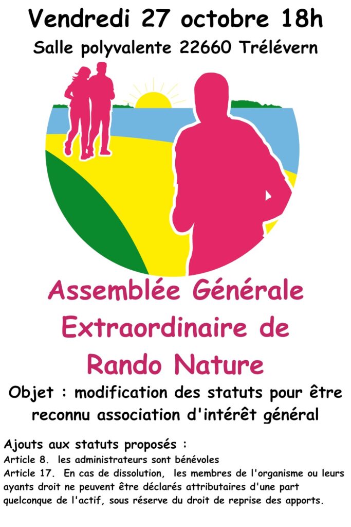AG Extraordinaire Rando-Nature vendredi 27 octobre à 18H Salle polyvalente de Trélévern