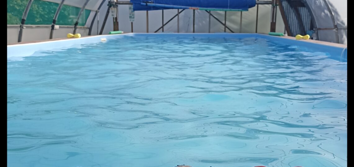 La piscine couverte et chauffée de Sylvie Le Page, située au n° 2 Hent Hir,…