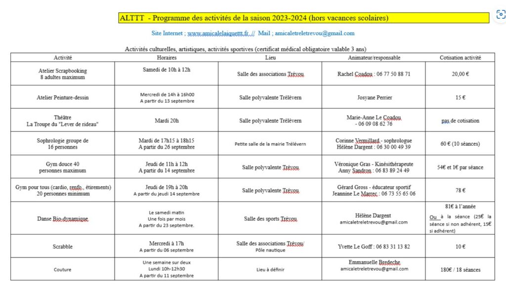 Contact : LEPETIT Françoise au 06 83 00 07 74
